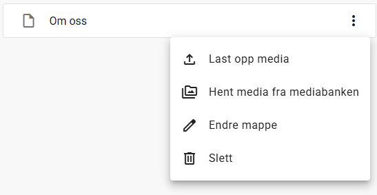 Når du legger til en "Side" så legger den seg inn som en "Side" node og du har mulighet til å velge ønsket mal konfigurasjon fra listen til høyre. Ved å bruke ikon for sortering på mappen kan du styre rekkefølgen hvis du vil ha "Ansatte" i eksempel over til å komme før "Om oss" for eksempel.