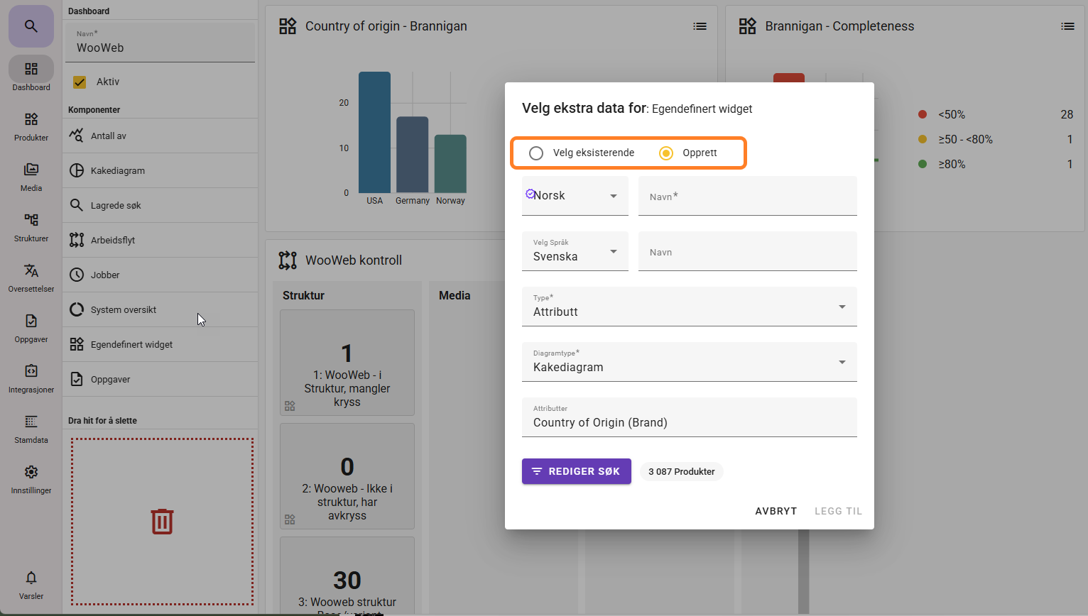 If you want to create a Custom Widget of the type Completeness (completion rate), it requires that you have first created a completeness rule that can be selected from the dropdown.