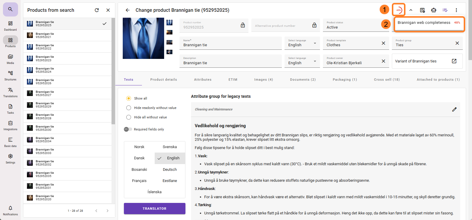 You can also choose “Completeness (completion rate)” in the type dropdown. This will display the completion level of the product.