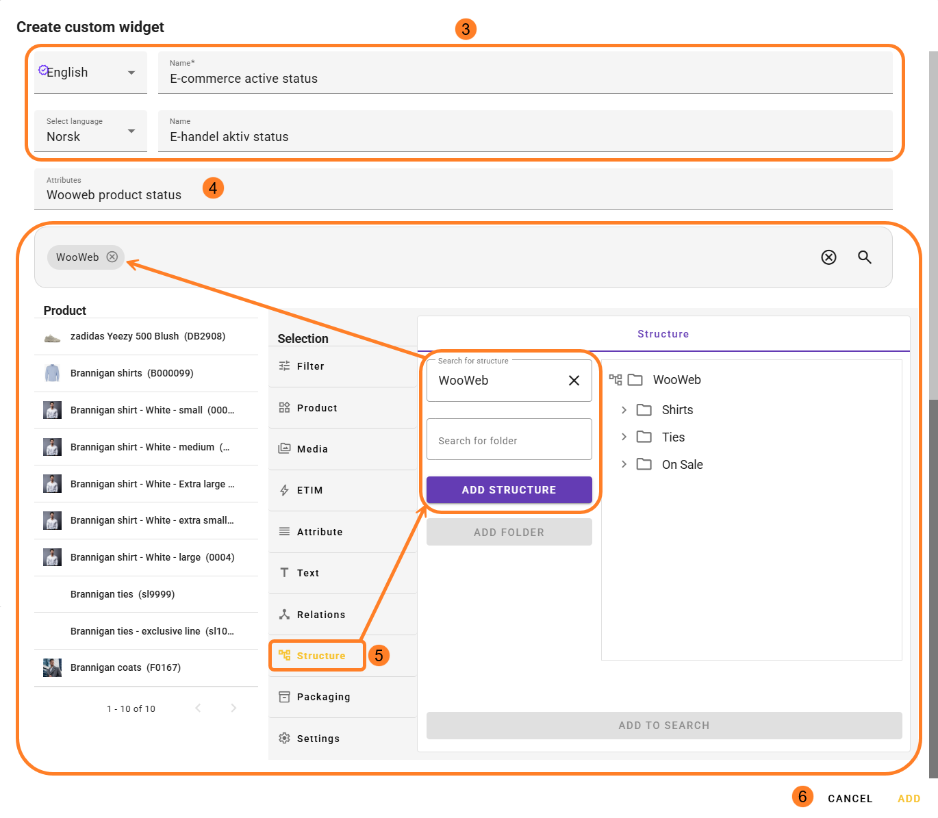 You give the widget a name (required), choose which attribute it should be based on, and optionally limit which products should be included in the data set.