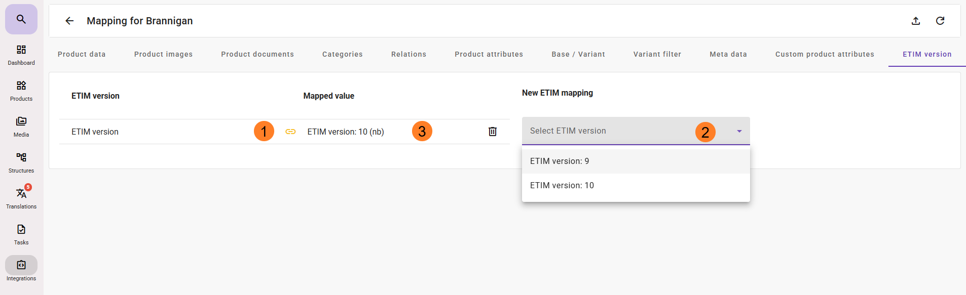 - Choose which type of data field in feed® you want to map in. ETIM class/attribute is only available for those who have this module activated.