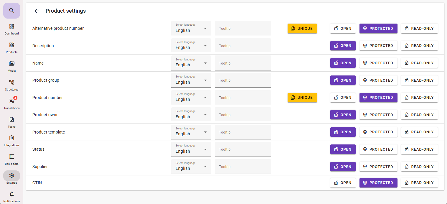 Unique is also available to set on Alternative Product Number. If you enable this.